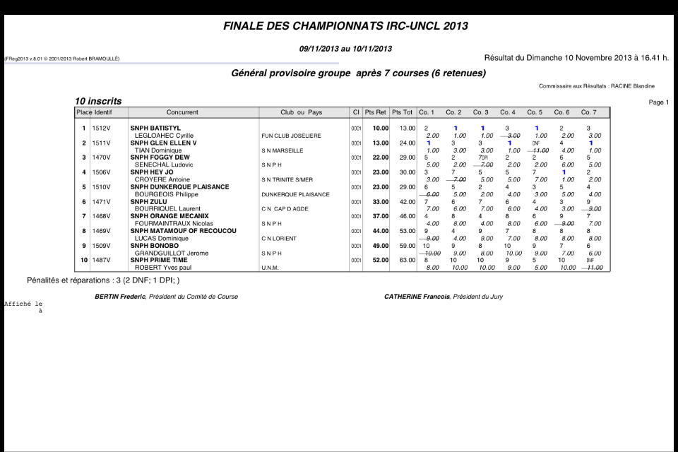 quand au classement du championnat IRC UNCL, ou enjeux par le