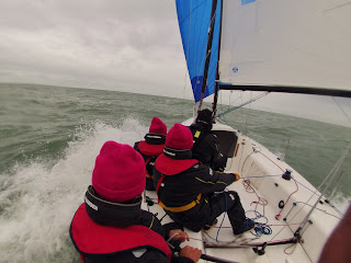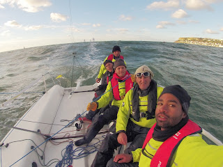 Pour le Team Glen Ellen, victoire à la 1´ manche, 3' à la suivante ou le courant nous coûte cher au passage au vent, puis de nouveau une manche de 3 en mode on lâche rien : obligé de revenir au départ pour ne pas avoir d'OCS, passage au vent en dernière position, et dernière bouée en 5' place !
